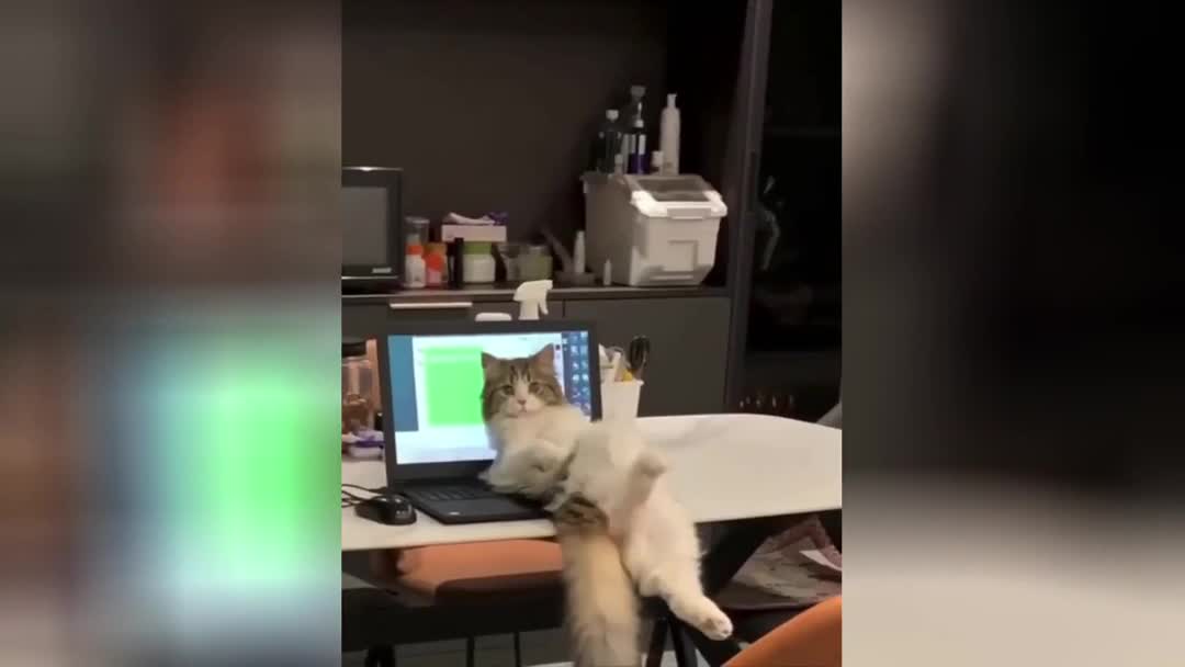 «Пузико почеши, затем работай»: котейка заняла ноутбук хозяина и была невозмутима