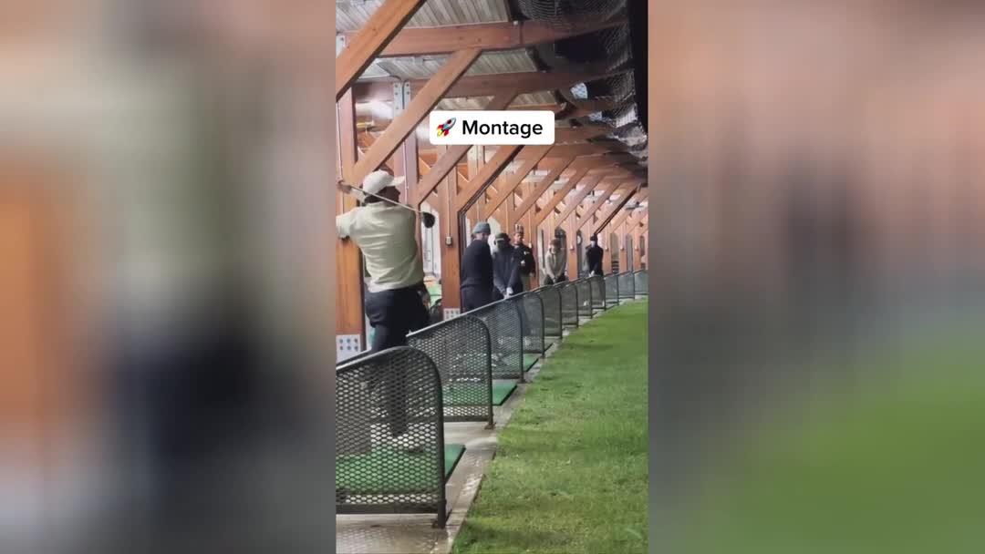 Гольфист разыгрывает других игроков, создавая ощущение сильнейшего удара по мячу