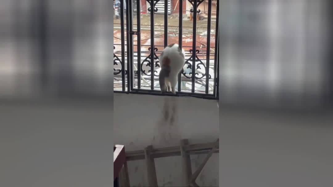 Когда набрал за зиму: на видео сняли неудачную трансформацию кота в жидкость