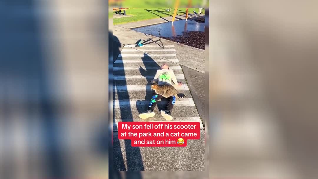 Скорая пушистая помощь: ребенок упал с самоката, и его пришел «лечить» кот