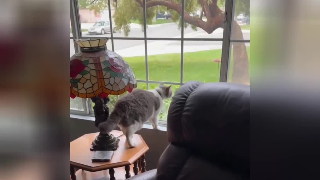 На видео сняли котика, который вырос с песелями, и теперь лает на почтальона