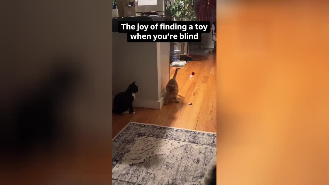 Хозяйка слепого кота сняла, как он играется со своими игрушками