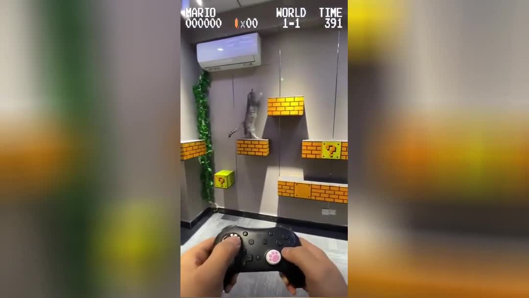 Геймер показал, как сыграть в Марио в реальной жизни с котом и лазерной указкой