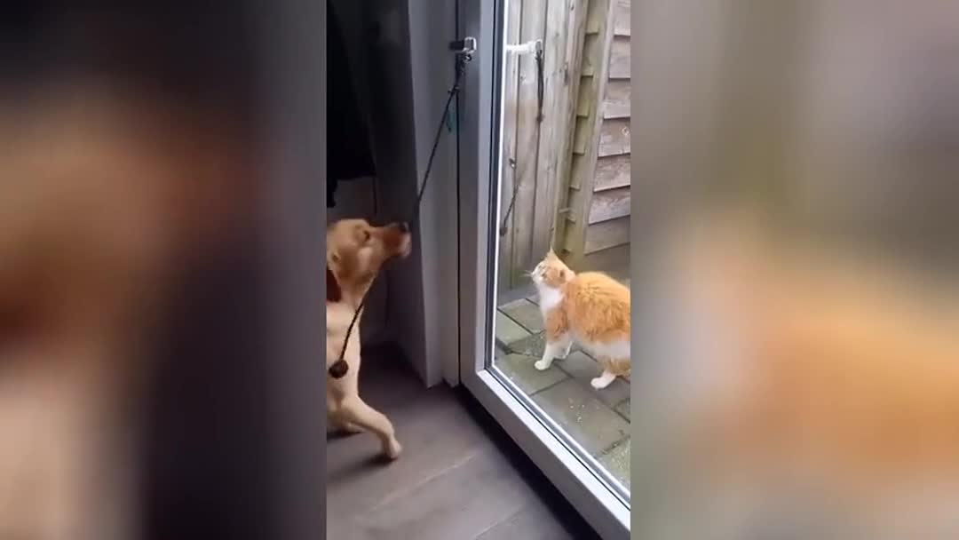 Пушистое доминирующее: на видео сняли, как кот обзавелся личным швейцаром