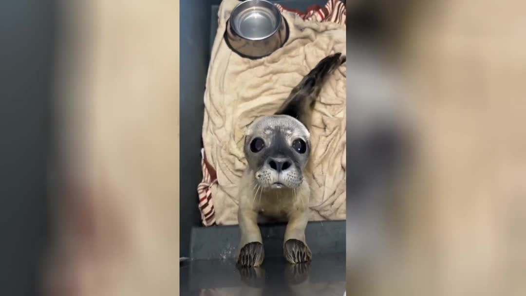 На видео сняли милейшего спасенного малыша тюленя, который проходит реабилитацию