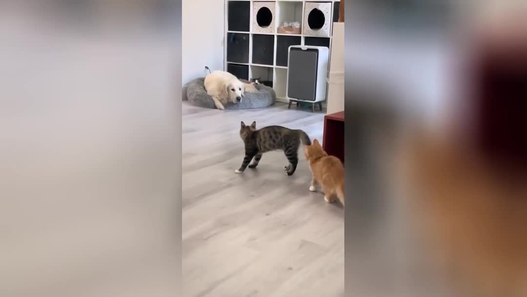 Пушистый балбес: кот-суетолог пытался устроить псу темную, но неожиданно передумал