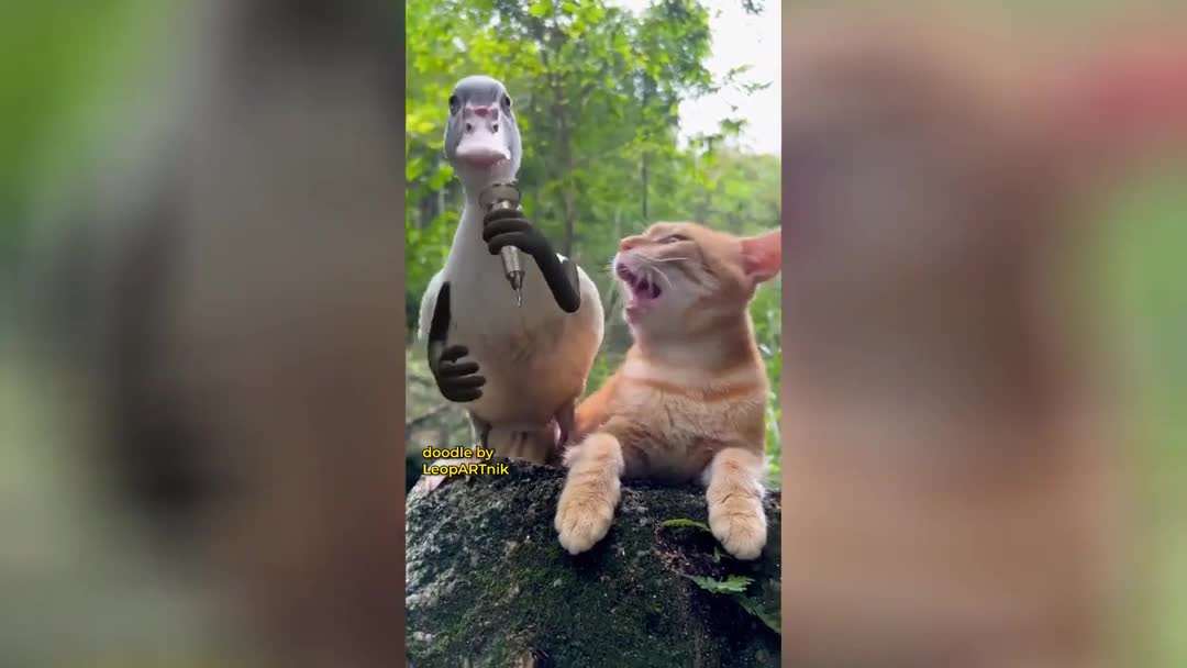 Художник, рисующий руки животным, показал, как уточка решила спеть коту