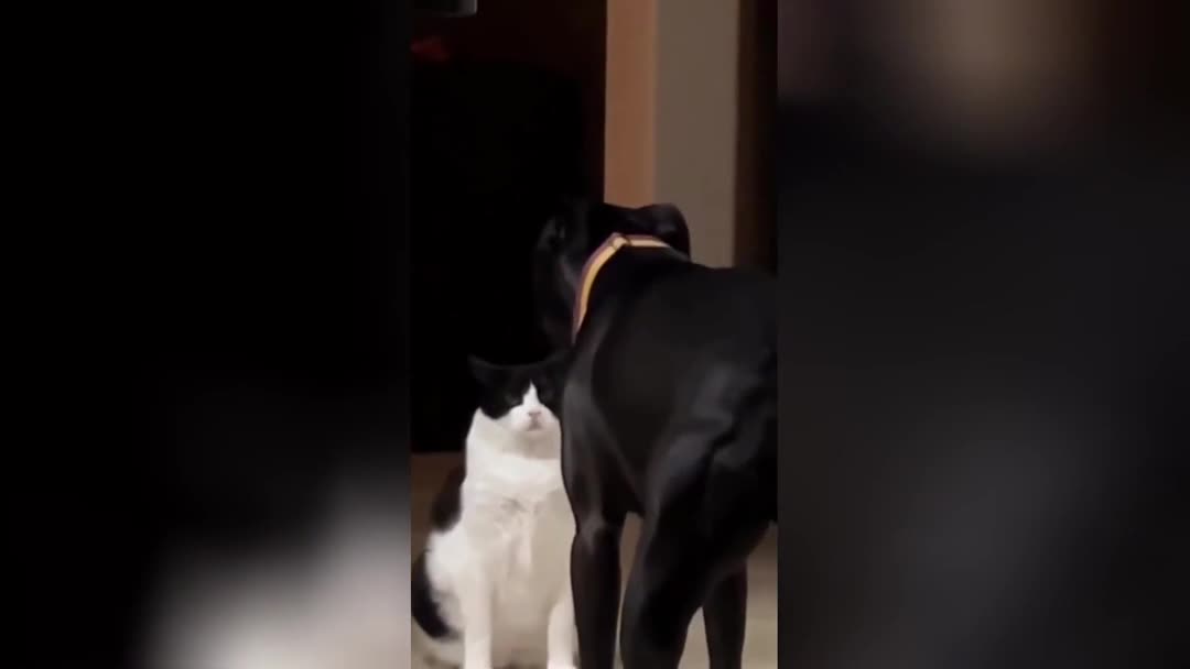 «Ты это мне?»: суровая реакция кота на собачий лай насмешит любого