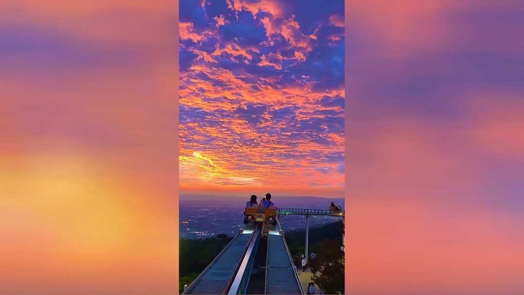 На видео сняли захватывающий вид в парке аттракционов, расположенном на горе