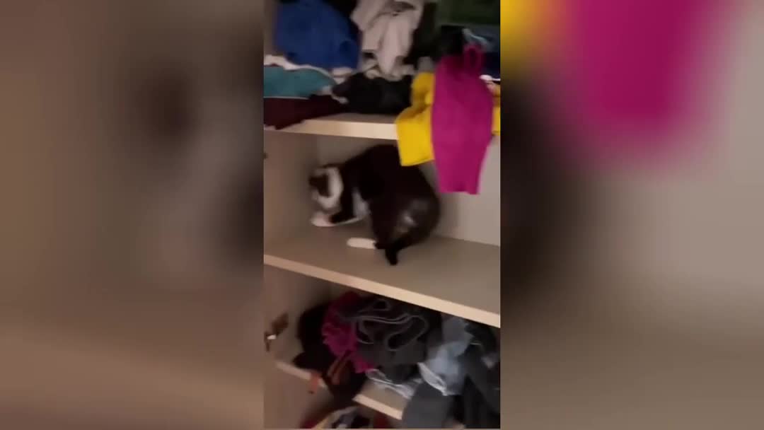 «Где экзорцист?»: смешные танцы забравшегося в шкаф кота сняли на видео