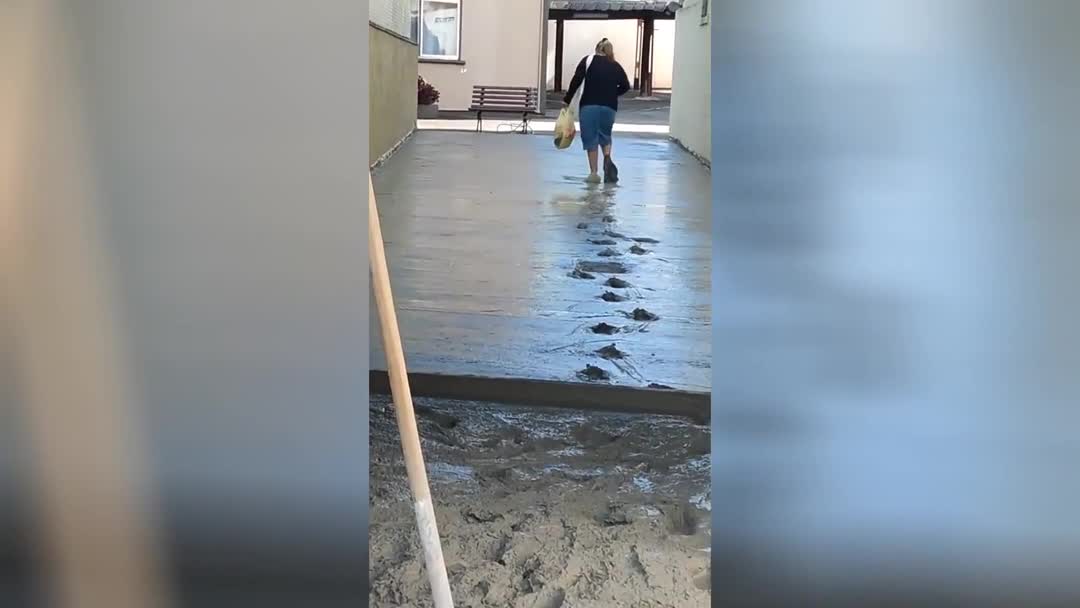 Женщина прошлась по свежезалитому бетону и заставила строителей остолбенеть