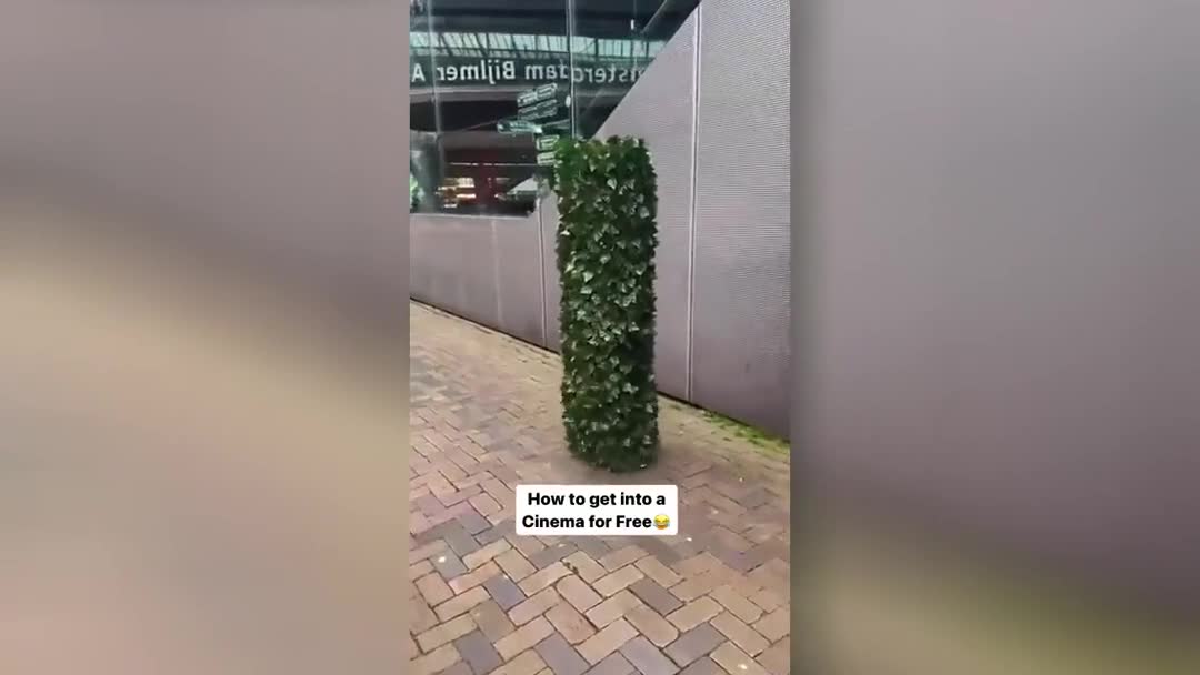 Парень снял лайфхак, как попасть в кинотеатр бесплатно, прикинувшись кустом