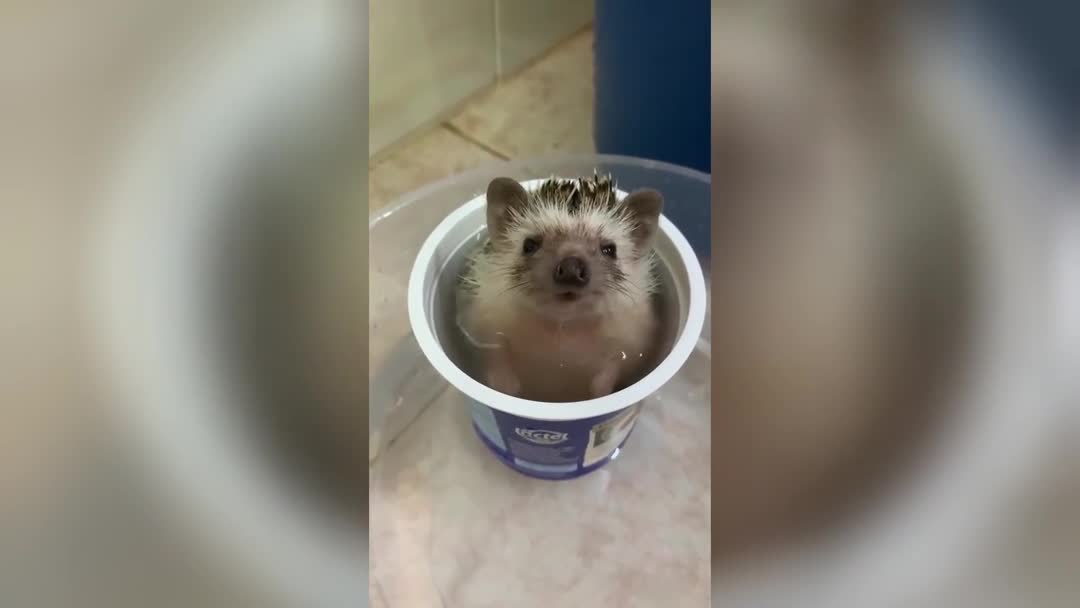 СПА для ежа: ежик в стакане показал, как он расслабляется